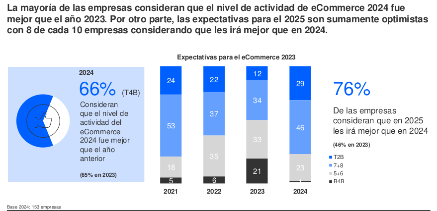 Finalmente, las expectativas para el futuro del ecommerce en Argentina son muy optimistas. La mayoría de las empresas consideran que el nivel de actividad en 2024 fue mejor que en 2023, y un porcentaje superior al 75% cree que en 2025 les irá aún mejor.