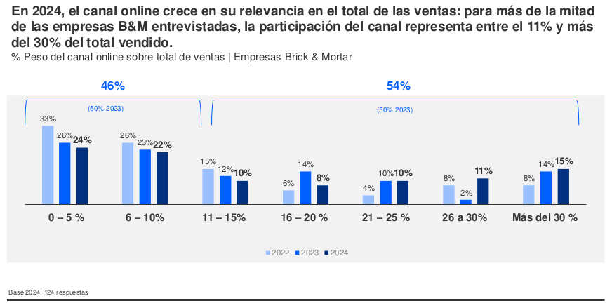 Desde la perspectiva de los vendedores, el informe revela que el canal online está ganando importancia en el total de las ventas. Si tienes una tienda física, integrar una sólida estrategia online es fundamental.